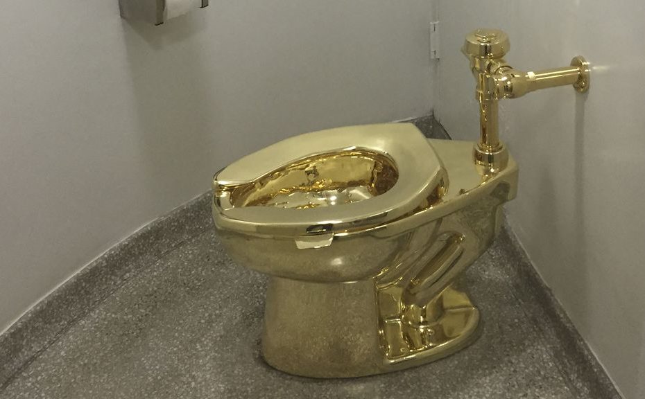 Eine andere goldene Toilette machte 2019 weltweit Schlagzeilen, als sie aus dem Blenheim Palace, der Heimat des ehemaligen britischen Premierministers Winston Churchill westlich von London, gestohlen wurde. Die Toilette wurde nie gefunden und wahrscheinlich eingeschmolzen.